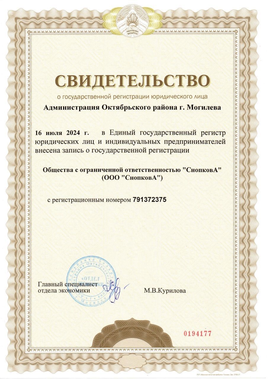 Орган, принявший решение о регистрации: Администрация Октябрьского района г. Могилева